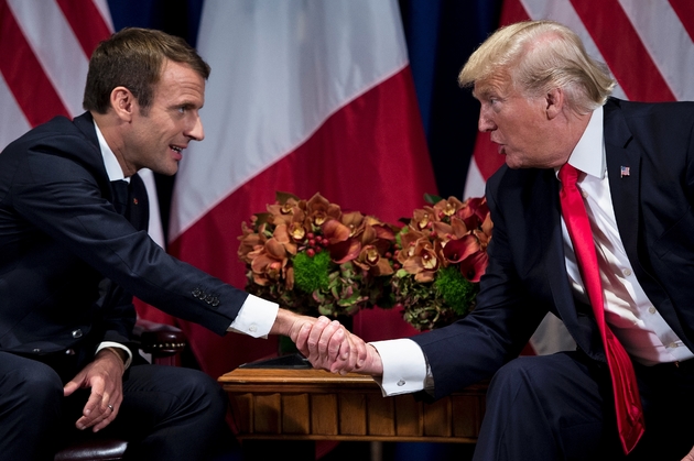 Emmanuel Macron serrant la main de Donald Trump, lors d'une rencontre aux Nations unies, le 18 septembre 2017, à New-York